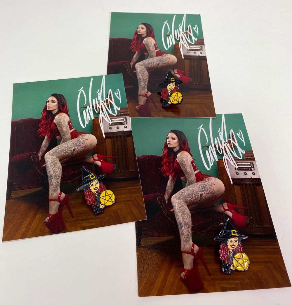 Witchy Pin + 5x7 signed print